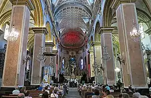 L'édifice est de style baroque. La façade, entièrement refaite au XIXe siècle est de style néoclassique. Son intérieur aux trois nefs richement décorées sont un exemple de baroque aux XVII et XVIIIe siècles.