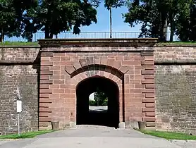 La citadelle de Strasbourg avait deux portes principales et une porte annexe. Une des portes principales était orientée vers la ville tandis que l’autre s’ouvrait à l’est vers le Rhin (il s’agit de la porte autour de laquelle s’est organisé le parc de la Citadelle).