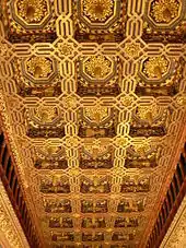- Art de la céramique (azulejos) et du stuc. Le royaume nasride a été le dernier royaume musulman de la péninsule Ibérique. Les nasrides sont ceux qui fondèrent le royaume de Grenade qui s’est lui maintenu durant deux siècles et demi. En effet, la dynastie des nasrides se fonde en 1232 sur la péninsule ibérique par Mohammed ben Nazar également connu sous le nom de Muhammad Ier, (alors qu’il y a déjà depuis 711 une présence musulmane en Espagne). Il se transforme en un royaume prospère en tout point: économique, culturel et artistique. C’est à ce fondateur que l’on doit l’unification des villes de Jaén, Grenade, Almeria, et Malaga, de cette façon c’est lui qui fonde le royaume de Grenade, qui résistera jusqu’en 1492 sous le règne de Boabdil. Les hommes de cette dynastie ont beaucoup apporté à l’art mauresque, et ont construit d’imposants palais. Un des exemples est l’Alhambra de Grenade, où se trouvait la cour nasride. Elle est la grande représentation de cet art. Alhambra signifie “rouge” en arabe. Il s’agit d’une construction édifié par le premier souverain nasride sur la colline de la Sabika, qui permet à l’ensemble fortifié de dominer la ville de Grenade. Le palais fut ensuite embelli par ses successeurs. Il est classé au patrimoine de l’Unesco. C’est sous Muhammad III que la mosquée royale, la porte du vin et le Palacio del Partal furent construits. Ismael Ier a demandé la construction d’un palais semblable au palais à celui qui est décrit dans le Coran où vergers, jardins et eaux permanentes s’y trouvent. Le palais des Lions concentre également une grande variété d’azulejos. Le quartier de l’Albaicin est classé au patrimoine mondial de l’Unesco : il était le lieu où se trouvaient artisans et commerçants de ce royaume. Nous pouvons aujourd’hui y retrouver des vestiges de l’époque : Casa de la Reina, Corral del Cambon, cour de la mosquée devenue la collégiale San Salvador, ainsi que des citernes souterraines conçues par les arabes pour stocker l’eau dans les villes. Les modèles qui se répètent à l’infini sont l’une des caractéristiques majeures de ce royaume, même si les artisans de l’époque utilisaient déjà d’autres techniques comme le procédé de la corde sèche, de l’arête et du reflet métallique. Cette dernière variété fut l’une des spécialités de Málaga, où se trouvait le principal centre de production de céramique du royaume. L’évolution des azulejos dépend de l’évolution des techniques picturales et de celles de fabrications. À l’origine, les couleurs étaient moins variées et on retrouvait généralement des teintes de bleu. Mais comme la technique, les couleurs ont évolué au fil des années. Lorsque l’art mudéjar se crée (XIV-XV), l’histoire de la péninsule ibérique encourage la diffusion de modèles artistiques et de techniques d’origine islamique dont les azulejos. Cet art devient celui qui se retrouvera dans l’architecture, les travaux artisanaux (les stucs), la sculpture en bois, et la céramique. Les stucs, sont comme les azulejos typiques, ils sont faits de plâtre ou de poussière de marbre et de colle qui imite le marbre, ils représentent une décoration murale à usage unique. Les azulejos étaient une ressource habituelle dans la décoration mudéjar, surtout dans les régions où la présence musulmane avait été notoire, comme en Andalousie. Ainsi, leur présence était évidente à Séville et Cordoue, des villes qui au XIIIe siècle avaient été conquises par le royaume chrétien de Castille et où entre les XIVe et XVe siècles certains des plus importants ensembles d’azulejos mudéjars furent élaborés, conservant les principaux traits stylistiques de leurs précédents arabiques. L’Alcazar de Séville est un exemple de cette époque, elle présente une somptueuse décoration où les azulejos recouvrent les murs et font écho aux mosaïques de l’Alhambra. L’histoire des azulejos se poursuit jusqu’au XXIe siècle, et s’adapte au style isabélin, à celui de la renaissance, au style baroque… Il existe d’autres variantes : les azulejos peints… Avec le développement de la publicité, on assiste à une réutilisation des azulejos. À partir des années 1920, l’azulejo est un élément indissociable des enseignes et des écriteaux des cafés, magasins et autres établissements publics. Il existe aussi des alicatados : Alicatado vient de l’arabe « al-qat’a’a » et signifie pièce ou azulejo découpé, taillé. Les alicatados sont donc des assemblages de morceaux d’azulejos taillés.