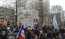 Le , le collectif La Manif pour tous — dont est exclu Civitas[85] — appelle à un rassemblement national contre le projet de loi. Les militants Civitas qui dénoncent le « concept Barjot » se retrouvent au départ de la place Pinel[86]. Ils protestent contre le mariage homosexuel avec pour mot d'ordre « Catholiques pour la famille ». Les organisateurs revendiquent 50 000 participants, tandis que les forces de l'ordre en comptent 8 000[87]. Les reporters du Monde[88], du Nouvel Obs[89] et de L'Express[90] parlent de « quelques milliers de manifestants ».