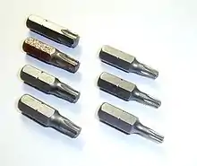 Différentes combinaisons existent entre les variantes : Torx Plus / Security / cinq lobes par exemple.
