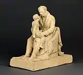 - Homme tenant une fillette sur ses genoux, terre cuite ;