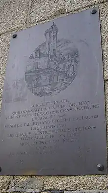 Une « commission de juges » venus de Paris va le juger, ainsi que ses acolytes et c'est ce tribunal d'exception (sans que le Parlement de Bretagne ait été consulté) qui le condamna le à avoir la tête tranchée, ainsi que trois autres gentilshommes bretons (Couédic[5], Montlouis[6] et Talhouët[7]) ; seize autres conjurés, en fuite, écopent de peines par contumace. Les quatre condamnés à mort sont exécutés à la hache sur la Place du Bouffay à Nantes le soir même[8].