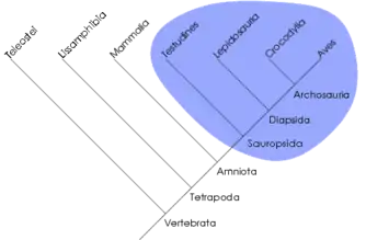 Un clade peut aussi être défini comme un ensemble d'organismes phylogénétiquement plus proches les uns des autres qu'ils ne le sont d'aucun autre organisme. Par exemple, les reptiles ne forment pas un clade parce que certains (les crocodiliens) sont plus apparentés aux oiseaux (et forment avec eux le clade des archosauriens) qu'aux autres reptiles. Ainsi, un clade correspond à une unité évolutive.