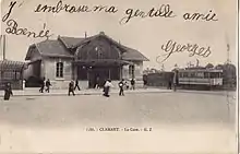 Les travaux d'une première gare commencent en 1838 et il faudra attendre deux années pour qu'elle soit ouverte aux voyageurs de la ligne Paris-Versailles au viaduc du Val-Saint-Léger. En 1904, il est fait appel à l'architecte A. Raguenet pour construire un autre bâtiment plus grand et situé de l'autre côté des rails. Cet architecte parisien, à qui on doit une importante documentation iconographique (Matériaux et documents d'architecture et sculpture, 1872-1921, 43 volumes), offre une nouvelle gare aux formes étonnantes et originales. Elle a été supprimée vers le milieu du XXe siècle pour être remplacée par une gare plus moderne.