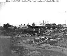 C'est Eads qui remporte l'appel d'offres pour la construction de sept bateaux selon le modèle de Pook. Son offre s'élève à 89 600 dollars par navire et il s'engage à les achever pour le 10 octobre 1861[15]. En raison de modifications apportées au projet en cours de construction, la date d'achèvement n'est pas respectée et le coût fait plus que doubler. À la fin du mois de janvier 1862, cependant, tous les navires avaient été livrés à l'armée, où ils furent incorporés dans la flottille de canonnières de l'Ouest (Western Gunboat Flotilla). Les sept canonnières de cette classe portaient le nom de villes situées sur le Mississippi ou ses affluents. Il s'agit des navires suivants : USS Cairo, Carondelet, Cincinnati, Louisville, Mound City, Pittsburg, et St. Louis (rebaptisé par la suite Baron De Kalb). Les quatre premières canonnières d'Eads furent construites à Carondelet Marine Ways (qui fait aujourd'hui partie de Saint-Louis). C'était un choix logique car Saint-Louis disposait des installations de cale sèche, était un centre de machinerie et disposait d'une réserve d'ouvriers qualifiés pour effectuer le travail nécessaire. Plus important encore, comme les canonnières devaient être utilisées sur le fleuve Mississippi, leur construction à Saint-Louis signifiait qu'une fois achevées, les embarcations pouvaient être rapidement mises en service. Nous sommes en 1861 et l'on pense encore que la guerre sera courte. Les trois autres canonnières sont construites dans les installations de Mound City Marine Railway & Shipyard[16].