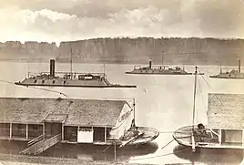 La flottille de canonnières de l'Ouest (Western Gunboat Flotilla) rencontra l'escadron de blocage du Golfe occidental (West Gulf Blockading Squadron) à Vicksburg (Mississippi) le 1er juillet 1862, où les deux flottes tentèrent en vain de capturer la ville avec un soutien symbolique de l'armée[31]. Le 17 juillet 1862, le CSS Arkansas blindé rencontra l'USS Carondelet et deux autres navires sur la rivière Yazoo. Le Carondelet est désemparé, son gouvernail ayant été détruit par une balle, et il s'échoue. Le Arkansas poursuit sa route sur le Mississippi, où il croise le reste de la flottille de canonnières et l'escadron du Golfe occidental (West Gulf Squadron)[32],[33].