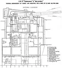 | Blindage | ceinture = 230 mm pont = 25 à 76 mm cloison = 300 à 330 mm kiosque = 360 mm Casemate = 150 mm Barbette = 300 mm |