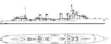 | Armement | 5 canons de 138 mm 4 canon de 37 mm AA 4 mitrailleuses de 13,2 mm 7 tubes lance-torpilles de 550 mm en une plate-forme triple axiale et deux plates-formes doubles latérales 2 grenadeurs avec 16 grenades anti-sous-marine peuvent embarquer jusqu’à 50 mines sous-marine |