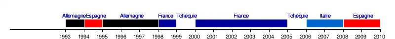 - Inclut le classement de l'équipe de Tchécoslovaquie (en 1993)