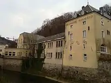 - Les ruines du château La Fontaine (ou de Mansfeld). Elles sont l'objet de fouilles archéologiques depuis 2003[33]. La ville a contribué à sa façon à la renaissance du parc en y installant un terrain de pétanque, des bancs, un bac à sable et des toilettes en 2017[34]. Il est prévu une réhabilitation des bâtiments d'époque subsistants.