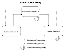 Clayton Alderfer s'oppose à la pyramide des besoins de Maslow en catégorisant la hiérarchisation des besoins grâce à sa théorie « existence—relation—croissance »[3],[4]. Dans les années 1980, Il propose également une théorie relative au fonctionnement des relations à l'intérieur d'un système[5].