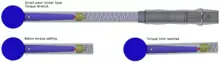 Clef à déclenchement où le couple est réglable de 20 à 100 Nm à 1 Nm près. Sur l'image la valeur réglée est de 45 Nm. Lorsque le couple est atteint la clef "claque".