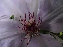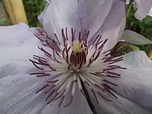 Les sépales de la clématite Bernardine mesurent entre 6 et 8 cm de long. Ils sont ondulés et striés le long de la nervure centrale.