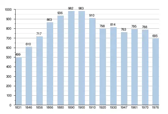 - Sources:INS, Rem:1831 jusqu'en 1970=recensements, 1976= nombre d'habitants au 31 décembre