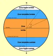 La division de la Terre en zones climatiques - liée à l'inclinaison de celle-ci par rapport à l'écliptique - a varié en nombre suivant les époques et les auteurs.