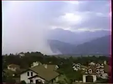 La température en été est très variable, on peut avoir un climat relativement chaud de 26 à 30 °C, avec des périodes de canicule à près de 35 °C, car Grenoble est placée dans une « cuvette » où la chaleur et la pollution se condensent l'air ne circule pas, en cas d'anticyclone, du fait de sa ceinture de montagne avec des sommets à près de 2 000 m[alpha 1]. Du jour au lendemain il peut faire très frais, puis passer à des températures automnales aux environs de 15 °C très rapidement.