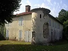 De l'ancienne église prieurale Sainte-Marie de Mimizan dans le département français des Landes subsiste seulement une partie du mur occidental de la nef et un clocher-porche carré et massif en brique et en alios, couvert en bardeaux de châtaignier et surmonté d'une flèche octogonale.