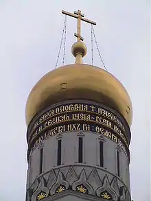 Construit entre 1505 et 1508 par Marco Bon Fryazin ("l'Italien" ou "Friazine"), le clocher d'Ivan le Grand remplace une église en pierre bâtie à cet endroit en 1329. Agrandi en 1600 sous le règne de Boris Godounov, il reçut un nouveau dôme. Des arcs-diadèmes ou kokochniks sont également ajoutés sur la partie haute du clocher[1]. Cet agrandissement est commémoré par trois lignes de texte en slavon inscrit en lettres d'or sous le dôme.