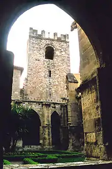 Le clocher est tout ce qui subsiste de la cathédrale carolingienne construite en 890 par l'archevêque Théodard de Narbonne, mort le . Cette cathédrale préromane a été détruite au XIIIe siècle lors de la construction de la Cathédrale Saint-Just-et-Saint-Pasteur : son emplacement est occupé par le cloître de la cathédrale, bâti de 1349 à 1417.