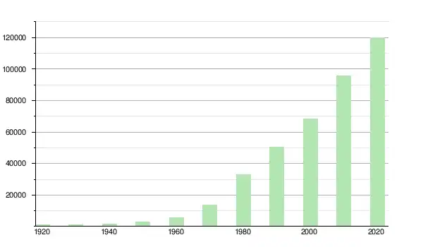 | 1950 | 2 766 | ▲ +70,11 % | |