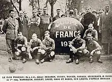 Quart de finaliste des Coupes de France 1918, 1926, 1927 et huitième de finaliste en 1929 et 1933, le Club français remporte la Coupe de France en 1931[28]. Au cours de cette campagne, le Club Français doit s'y reprendre à quatre fois pour éliminer l'Olympique de Marseille en huitièmes de finale sans compter un match remis à Strasbourg pour terrain impraticable, le 8 mars[29]. Pourtant, dès le deuxième match, le 22 février, l'OM s'impose 2-0 sur les terres du Club, à Buffalo[30]. En alignant l'Allemand Vernicke, non qualifié, l'OM aurait pu connaître une élimination sur tapis vert, mais la partie fut donnée à rejouer[31]. La décision se fait le 22 mars à Colombes devant une grosse dizaine de milliers de spectateurs. Marseille ouvre la marque par Alcazar[32] ou Gallay[33], selon les sources. Mercier égalise. En prolongation, la quatrième jouée lors de cette opposition, Boros inscrit le but décisif. Le Club élimine ensuite l'Excelsior de Roubaix au Havre le 29 mars (1-0) en quart de finale[34] puis l'OGC Nice à Colombes le 12 avril en demi-finale (5-1)[35] avant d'affronter le SO Montpellier en finale à Colombes le 3 mai. Robert Fischer, l'entraîneur clubiste est très confiant avant la finale en déclarant « Le Club français ne peut pas perdre »[36]. Après 32 minutes de jeu, le Club mène 3-0. Une heure plus tard, le président de la République Gaston Doumergue remet la Coupe au capitaine clubiste, Huvier, qui porte un bandage sur la tête à la suite d'une blessure en début de match[37].