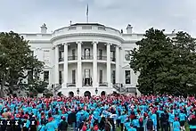 Fin octobre un taux élevé d'infections a touché le personnel du vice-président Mike Pence[10] et une deuxième vague épidémique a suivi le jour du scrutin, après que Trump a organisé une soirée dans la East Room[11].