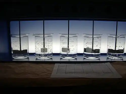La détermination de ces grandeurs en laboratoire est réalisée par ce qu'on appelle le jar test. Il consiste en une rangée de béchers alignés sous un appareillage permettant de tous les agiter à la même vitesse. Les différents béchers ont reçu une dose différente de réactifs et à la fin de l'expérimentation, on détermine quels sont les couples quantités de réactifs / vitesse et temps d'agitation qui permettent d'obtenir l'eau la plus limpide, les flocs les plus gros et les mieux décantés. Concernant les vitesses d'agitation, la seule certitude est que la coagulation nécessite une vitesse d'agitation plutôt rapide (afin de bien mélanger l'eau et que les colloïdes et les cations métalliques se rencontrent et se neutralisent) et que la floculation - quant à elle - nécessite une vitesse relativement lente (afin de favoriser la rencontre et l'agrégation des colloïdes mais sans détruire les flocs déjà forcés).
