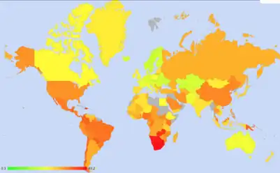 À partir des données du World Factbook de la CIA, qui sont établies pour des années de référence diverses selon les pays, on obtient les cartes ci-après[4].