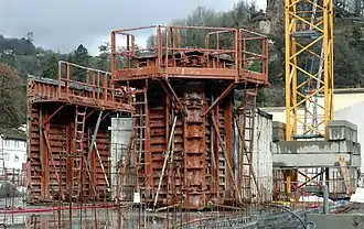 Pour la réalisation de constructions de grande hauteur (piles de pont, silos, cheminées, antennes, tours...), des techniques spécifiques peuvent être mise en œuvre, par exemple :