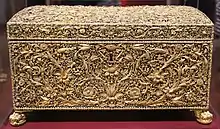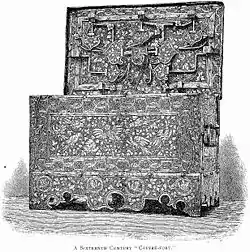Certains coffres ont été très richement décorés (peints, sculptés, garnis d'appliques, de moulures, de panneaux sculptés, peints, émaillés ou de matériaux variés, incluant os, ivoire, etc.). Une grande richesse de motifs en frises et entrelacs complexes a aussi été produite.