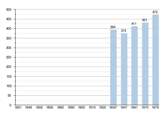 - Sources:INS, Rem:1831 jusqu'en 1970=recensements, 1976= nombre d'habitants au 31 décembre