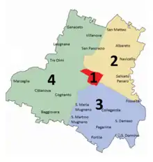 Situation de Cognento (circonscription 4) par rapport à la ville de Modène.