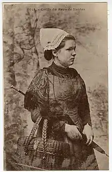 - La coiffe des poissardes nantaises. En calicot amidonné, car un peu plus longue que celle des maraîchères[2].