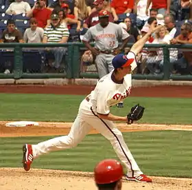 Il débute deux parties lors des éliminatoires de 2010 et est chaque fois impliqué dans la décision : une victoire en Série de divisions face à Cincinnati et une défaite dans le troisième match de la Série de championnat de la Ligue nationale où les Phillies s'inclinent devant les Giants de San Francisco.