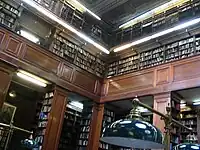 Le bâtiment comporte trois niveaux, non compris le semi-souterrain et le comble mansardé de la rue Bolívar, qui sert de dépôt. Par l’entrée principale de la rue Bolívar l’on pénètre dans un vaste vestibule de grande hauteur, et de là à un ample couloir bordé de colonnes conduisant à deux escaliers d’honneur symétriques en marbre blanc, à plafond rouge, lesquels mènent au premier étage, où se situent, d’une part, le grand auditorium dit Aula Magna, inspiré de la salle principale du palais Garnier de Paris, et pourvu d’un orgue de 3600 tuyaux (le plus grand de la ville), et d’autre part, la bibliothèque, dotée de plus de cent mille volumes, et dont la collection de périodiques est la plus fournie d’Argentine en publications du XIXe siècle. À proximité se trouve la provisorerie (Rectoría), dont les bureaux ont gardé le papier-peint et le parquet de chêne d’origine. Une fois franchi ce « secteur noble » de l’édifice, on accède au secteur étudiant, où les murs sont revêtus d’un caractéristique carrelage vert.