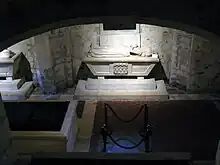 - Le duc d'Aumale (1704-1708) et Louis-Auguste de Bourbon, prince souverain de Dombes (1700-1755), tous deux fils de Louis Auguste de Bourbon, duc du Maine, lui-même fils de Louis XIV et de Madame de Montespan (au centre de la crypte).