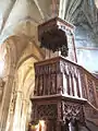 - Longueur du chœur et de l'abside : 10,49 m. Le chœur du XIIe siècle entouré d'un déambulatoire voûté d'ogives. Sacristie et salle du trésor du XVIe siècle