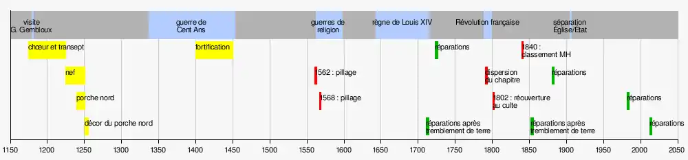■ Histoire de Candes-Saint-Martin et de la France - ■ Phases de construction - ■ Phases de réparation - ■ Évènements marquants