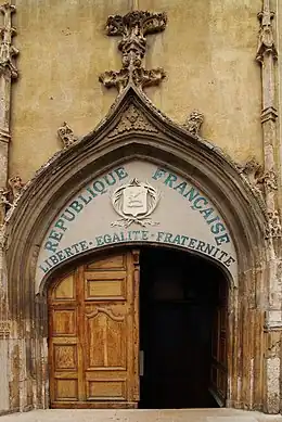 La devise de la République Française est inscrit à son tympan en 1905[réf. nécessaire], année de la loi de séparation des Églises et de l'État.