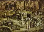 Giovanni di Niccolò Luteri, dit Dosso Dossi | Paysage avec des joueurs de cartes | vers 1518-1522 | huile sur toile | 52,2 × 51,2 cm | 2014[33] | fragment d'une frise | |