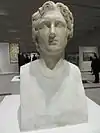 ![]() | Alexandre le Grand, roi de Macédoine (336-353 av. J.-C.), copie romaine d'un portrait de bronze d'Alexandre nu brandissant une lance[LL 1] | inconnu | D'après Lysippe (né à Sicyone, Péloponnèse, Grèce ; actif vers 370-300 av. J.-C.) | vers 130 apr. J.-C. | marbre | H. 62 cm | Cp 6430 | département des sculptures | |