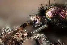 Il existe aussi des collemboles carnivores (par exemple les espèces du genre Friesea) qui se nourrissent de nématodes, de protozoaires et de rotifères[31]. Les collemboles adaptent leur comportement exploratoire de recherche alimentaire à la disponibilité en nourriture, comportement qui pourrait interférer avec l'intensité de dispersion des individus au sein d'une population[32].