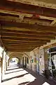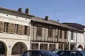 La place est l'une des plus belles du Gers avec son ensemble de couverts magnifiquement restaurés. La place des bastides était, en effet, le plus souvent bordée par des galeries couvertes appelées cornières, ambans ou couverts. Ces lieux de passage, à l'abri du soleil et de la pluie offraient aux commerçants et aux artisans des avancées pour leur échoppes. La place doit être vaste comme à Cologne, car c'est un espace essentiel de convivialité. C'est aux côtés nord et sud que l'on trouve les plus anciens couverts. Ils sont à colombage et brique en fougère ou enduits, sur piliers de bois. Le mélange des matériaux utilisés pour la construction des bâtiments : bois, brique et calcaire, donne à cette place une âme bien particulière.