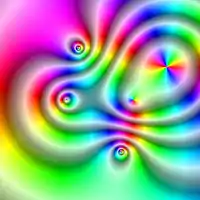 - Autre exemple de représentation de la phase par quatre couleurs (bleu, magenta, rouge et noir) : (en) François Labelle, « A Gallery of Complex Functions », sur wismuth.com, (consulté le )