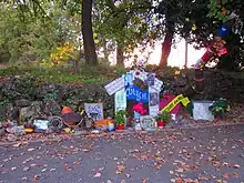 À une centaine de mètres de l'accident, à hauteur du carrefour du Piol, entre Opio et Valbonne[49], un lieu de recueillement est aménagé et fait l'objet d'un rassemblement annuel de motards, au mois de juin[50],[51]. À côté se trouve une stèle, régulièrement fleurie par des riverains et visiteurs[49]. Le carrefour du Piol a été rebaptisé « rond-point Coluche » le [52].