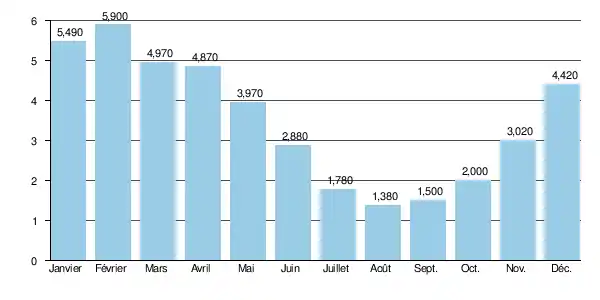 La rivière présente les fluctuations saisonnières de débit typiques de la région, avec des crues hivernales de décembre à avril inclus, et des basses eaux de fin d'été-début d'automne, de juillet à octobre.