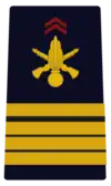 L'insigne de commandant est reconnaissable, sur les épaules ou au bout des manches de la veste, par quatre galons :