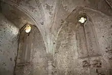 L'intérieur de la chapelle était orné de décors peints dont il ne subsiste presque rien dans les deux premières travées de la nef. L'occupation humaine au cours des guerres successives depuis 1814 suivi d'un abandon définitif ont altéré les enduits en profondeur. Néanmoins dans cette partie il subsiste trois croix cerclées polychromes très altérées qui peuvent être assimilées à des croix de consécration de la chapelle. Les nervures toriques des croisées d'ogives conservent quelques décors diffus. La troisième travée correspondante au chœur a partiellement conservé les enduits successifs en relativement bon état. Des indices probants permettent d'espérer la conservation de peintures murales ou de fresques masquées par les badigeons au niveau du chevet.