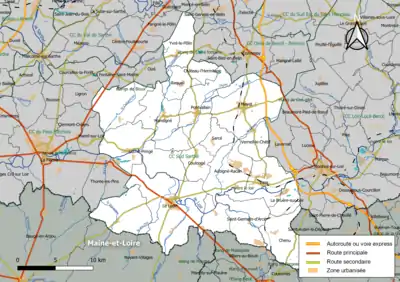 Située au sud du département de la Sarthe, la communauté de communes Sud Sarthe regroupe 19 communes et présente une superficie de 542,6 km2[3].